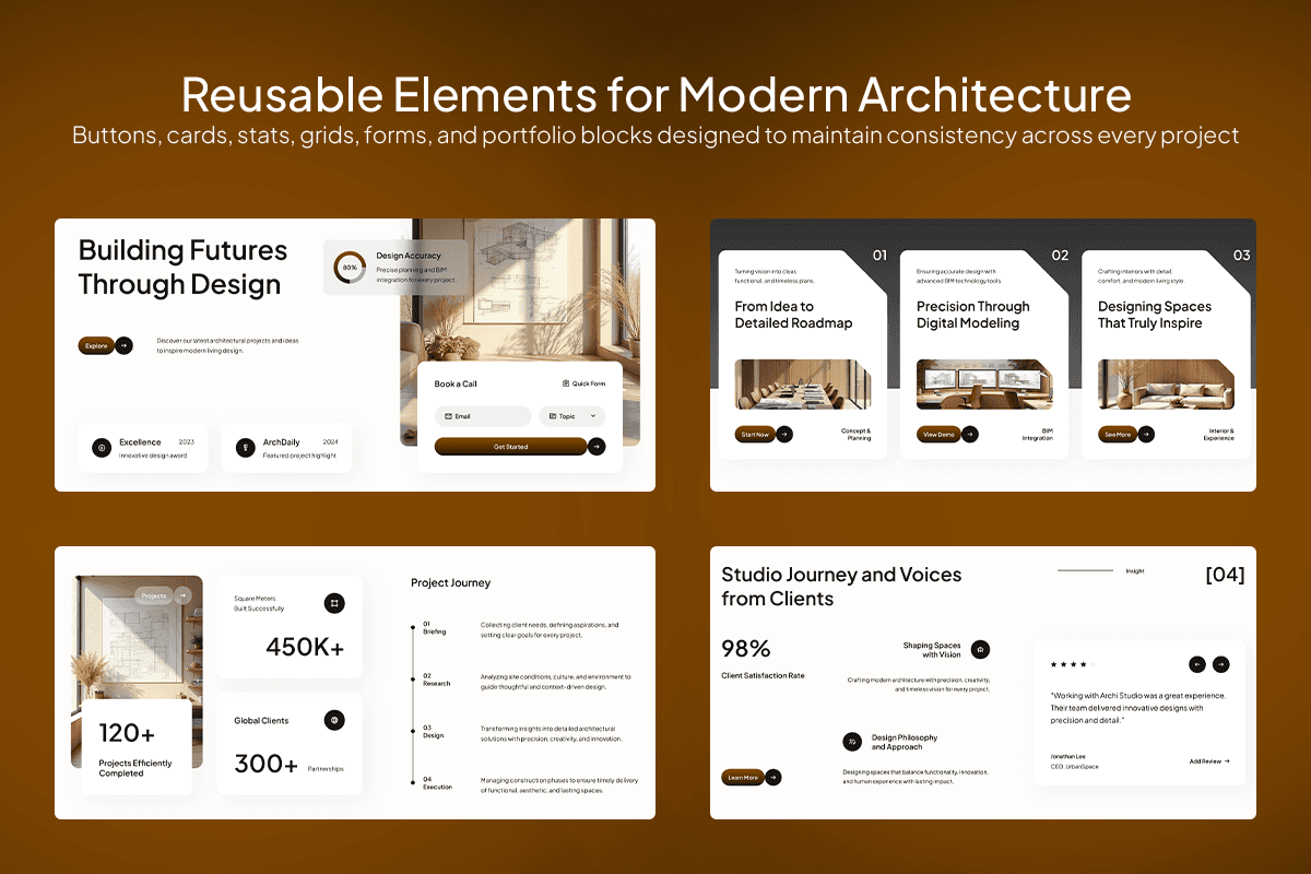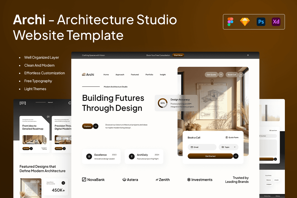 Archi is a sophisticated architecture studio website template crafted for firms that want to present their work with a balance of precision and emotion. Featuring warm tones, clean typography, and gallery-focused layouts, this template creates an editorial experience that feels curated, professional, and timeless. Each section is thoughtfully arranged to highlight your approach, featured projects, design journey, and client stories—helping visitors understand both the craft and the thinking behind every space.