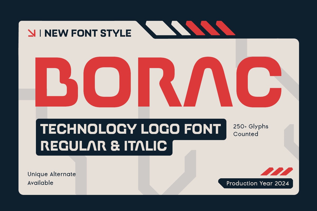 BORAC is a technology logo font designed to bring a sleek, modern, and futuristic aesthetic to your branding. Ideal for tech startups, digital products, software logos, and high-tech branding projects, it combines precision and clarity with cutting-edge style.