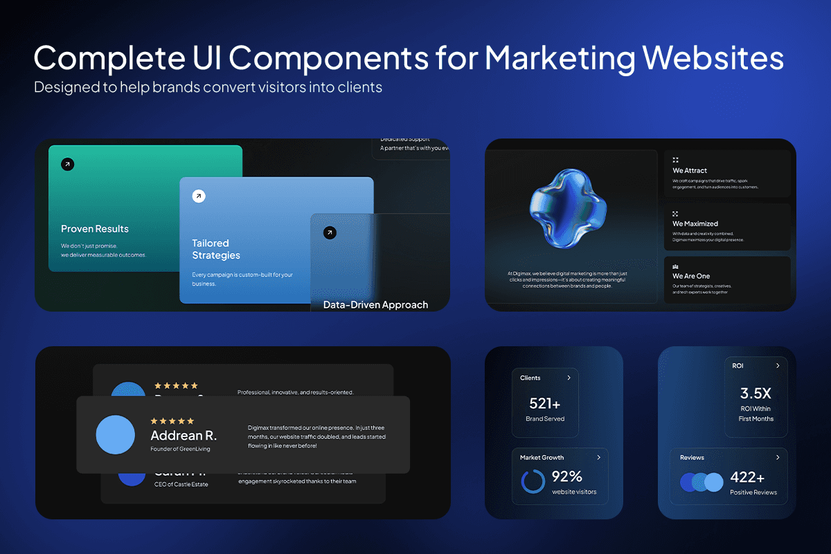 Digimax is a sleek digital marketing website template crafted for agencies and growth-focused teams that want to communicate impact through data, strategy, and storytelling. With a striking hero section, KPI highlights, and visually rich service blocks, this template helps you present SEO, social media, PPC, and other marketing solutions in a clear and compelling way.