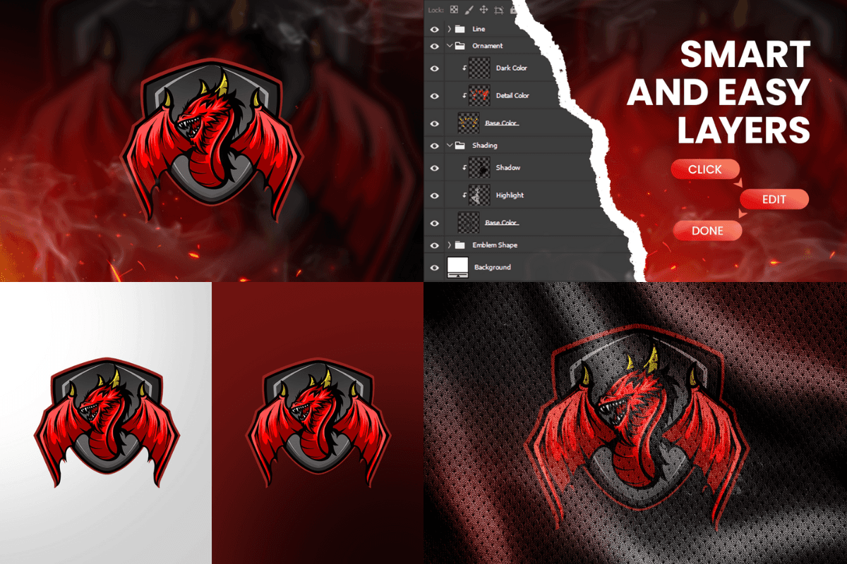 The file is fully layered and neatly organized, making it easy to customize colors, highlights, shadows, and line art to match your team’s style. Whether showcased on jerseys, banners, overlays, or digital assets, Dragon ensures maximum visibility, strong personality, and a professional finish.