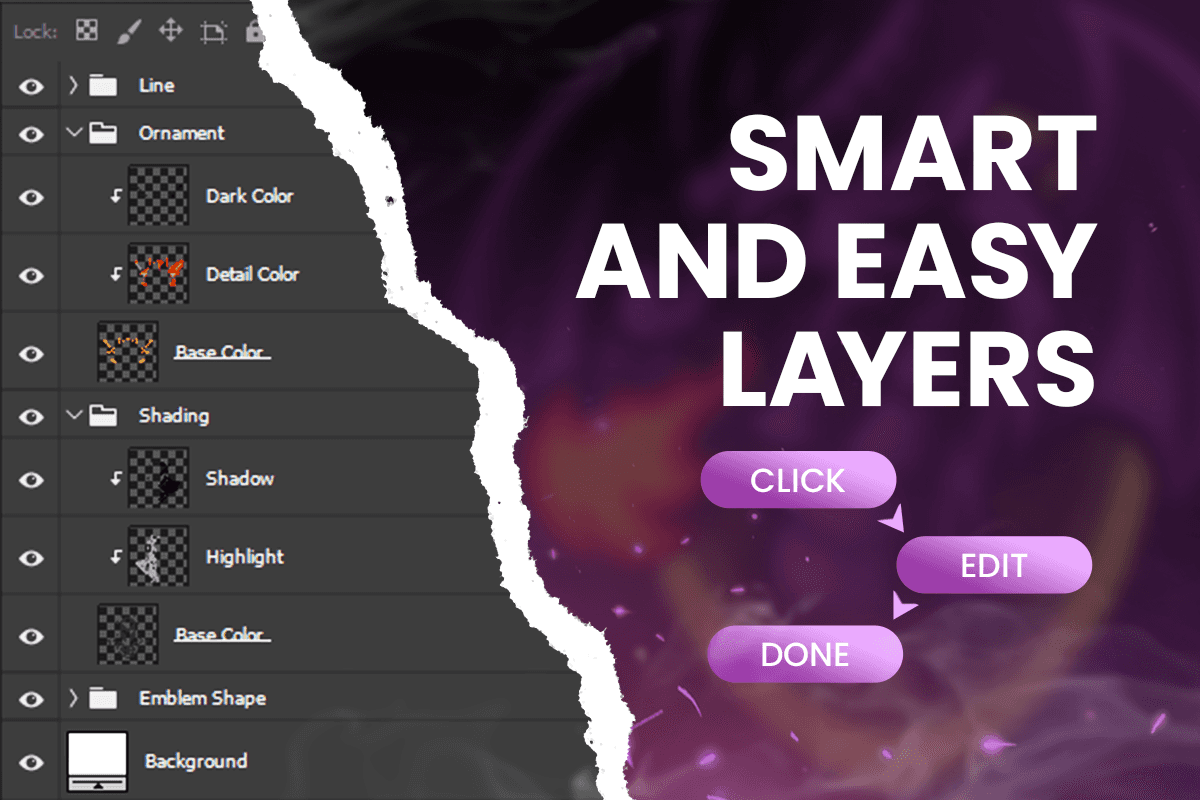 Editable fire effects, highlights, and shadows