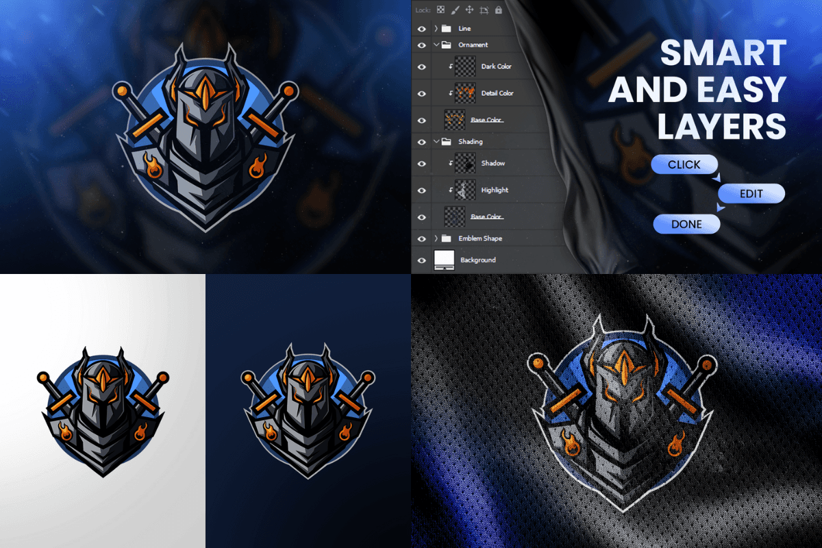 The file is fully layered and organized, allowing easy control over color variations, shading, highlights, and line art. Whether used on jerseys, banners, digital overlays, or promotional materials, Fire Knight ensures a professional, high-impact presence with clean, bold illustration quality