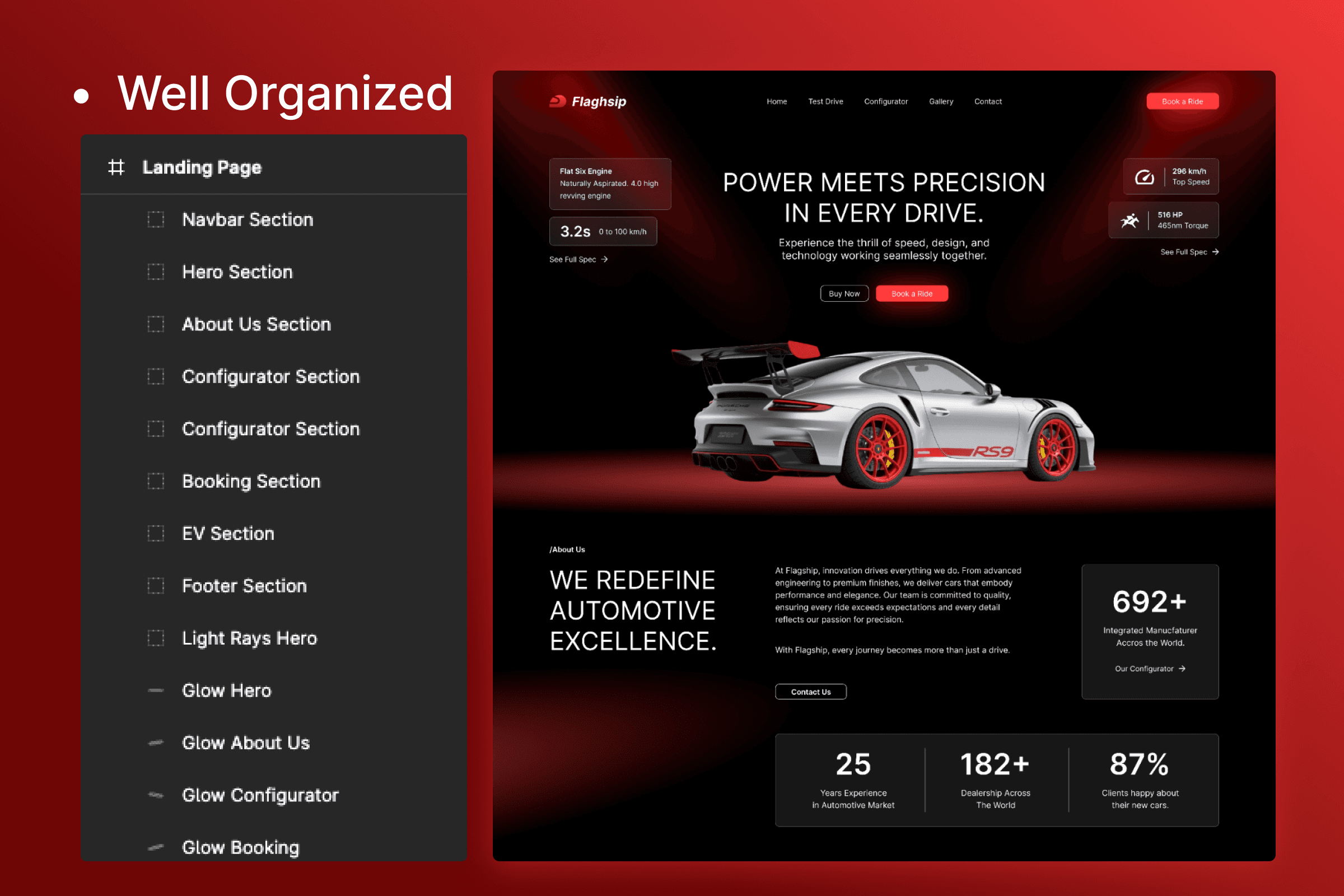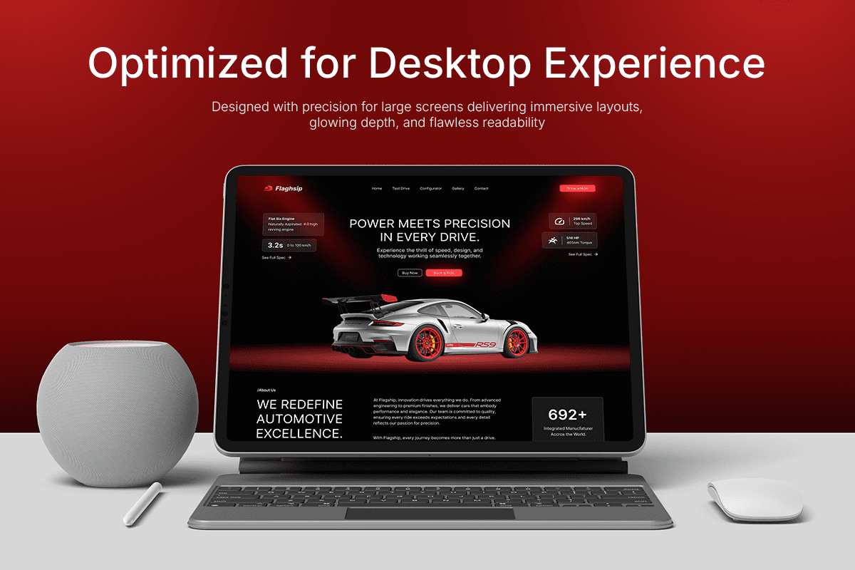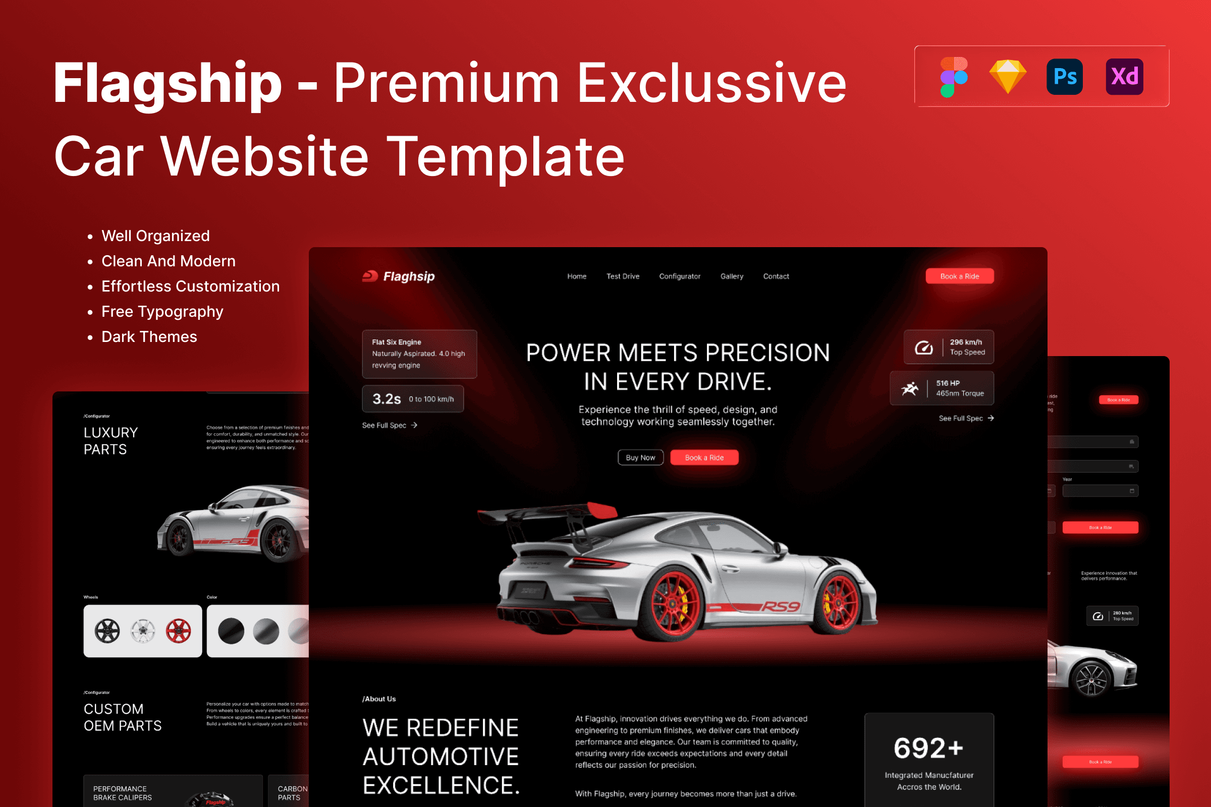 Flagship is a premium exclusive car website template crafted for automotive brands, performance divisions, and luxury dealerships that want to present their vehicles with drama and precision. Featuring a bold dark interface, high-impact car imagery, and clean typography, this template delivers a showroom-level experience that feels fast, refined, and aspirational.