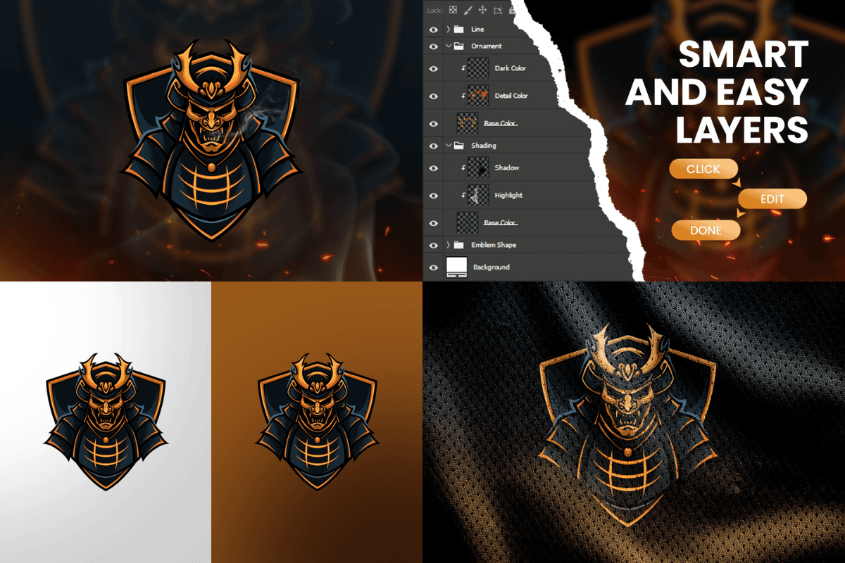 The file comes with fully editable, neatly organized layers, allowing easy customization of colors, highlights, shadows, and line details to match any brand identity. Whether used on jerseys, overlays, banners, or gaming merchandise, Samurai Japan delivers a bold, professional, and visually impactful identity perfect for high-level competition.