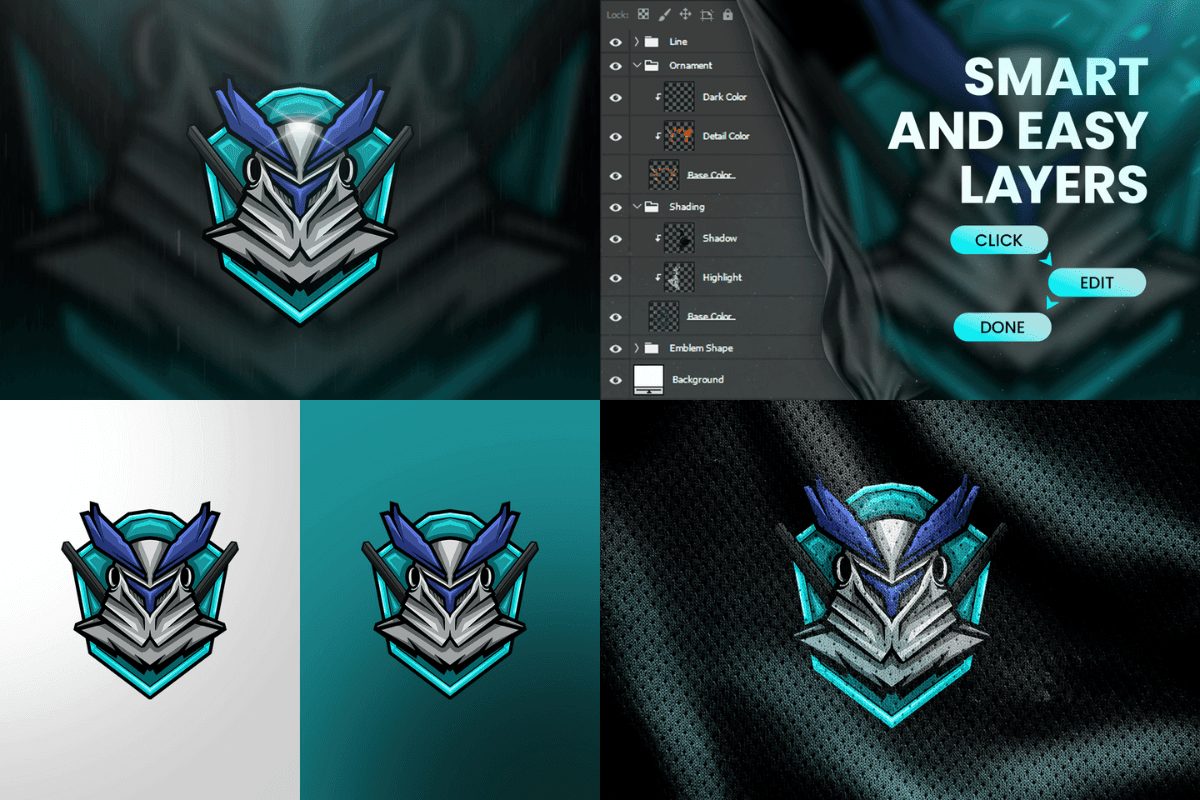 The file comes with fully editable, neatly organized layers, allowing easy customization of colors, highlights, shadows, and linework to match any brand style. Whether used on jerseys, overlays, banners, or gaming merchandise, Knight delivers a clean, professional, and visually impactful identity perfect for modern esports competition.