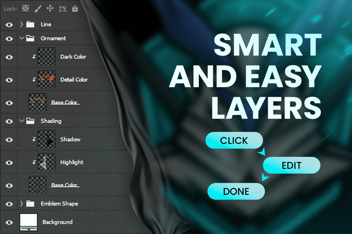 Editable highlights, shadows, and armor accents