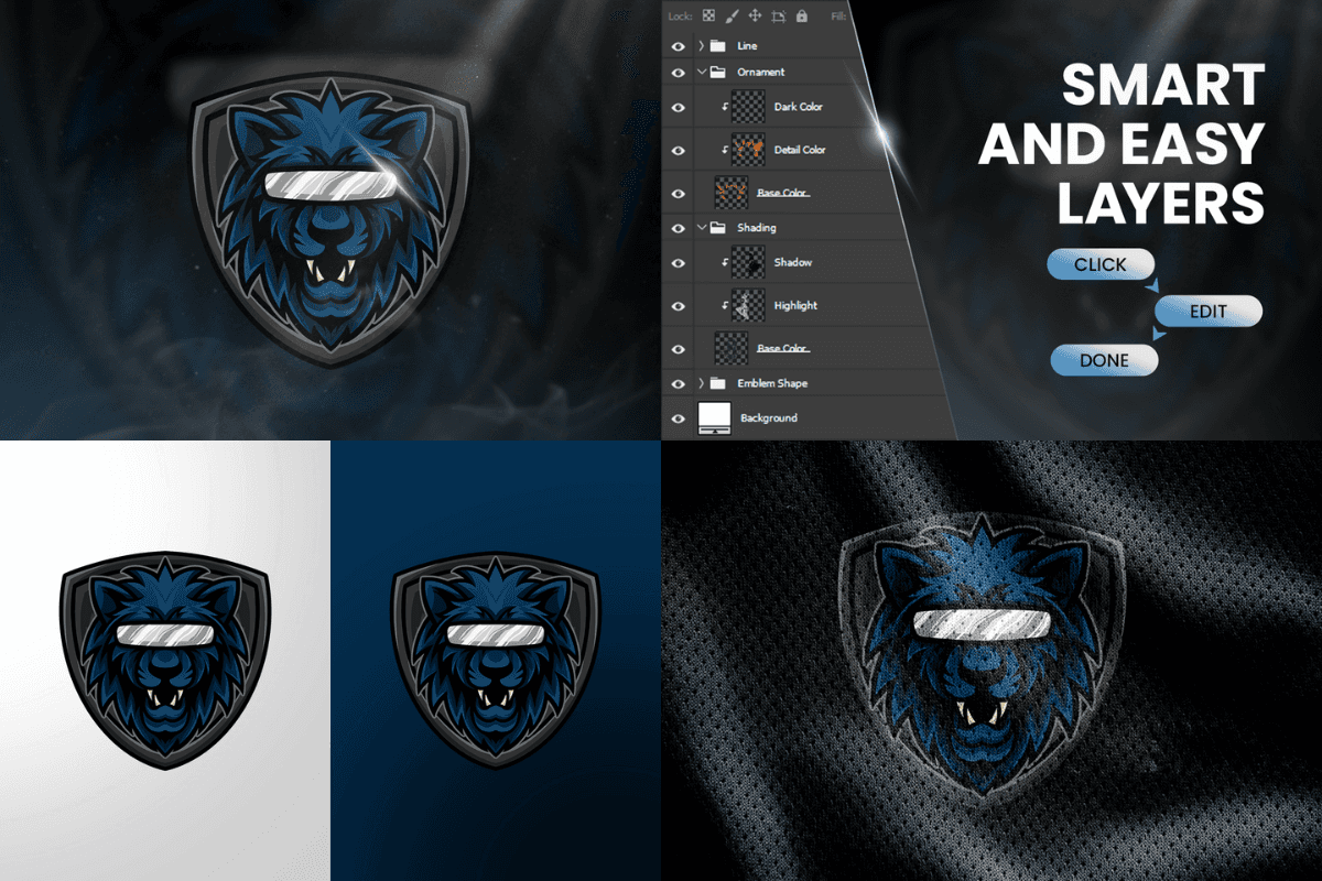 The file is fully layered and neatly organized, making it easy to edit colors, highlights, shadows, and linework according to any brand direction. Whether placed on jerseys, overlays, banners, or merchandise, Lion delivers a clean, professional, and visually striking identity built for modern competitive gaming.