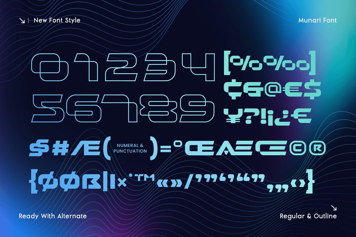 Ideal for sci-fi themes, technology startups, and cutting-edge branding, MUNARI brings a modern and forward-thinking vibe to your designs. Its minimalist structure and bold presence ensure that your brand stands out, whether in print or on the screen.